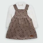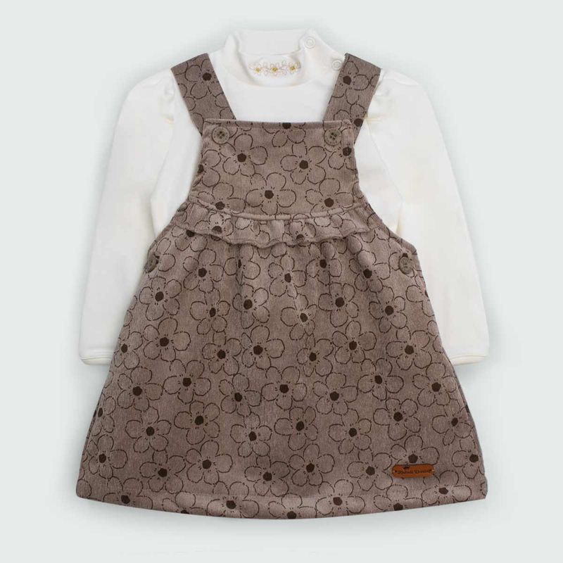 Conjunto moni nina confeccionado en material algodon pima. Disponible en colores vibrantes como beige, crema, camello. Tallas disponibles: 2T, 3BB, 4BB, 4T, 5BB.