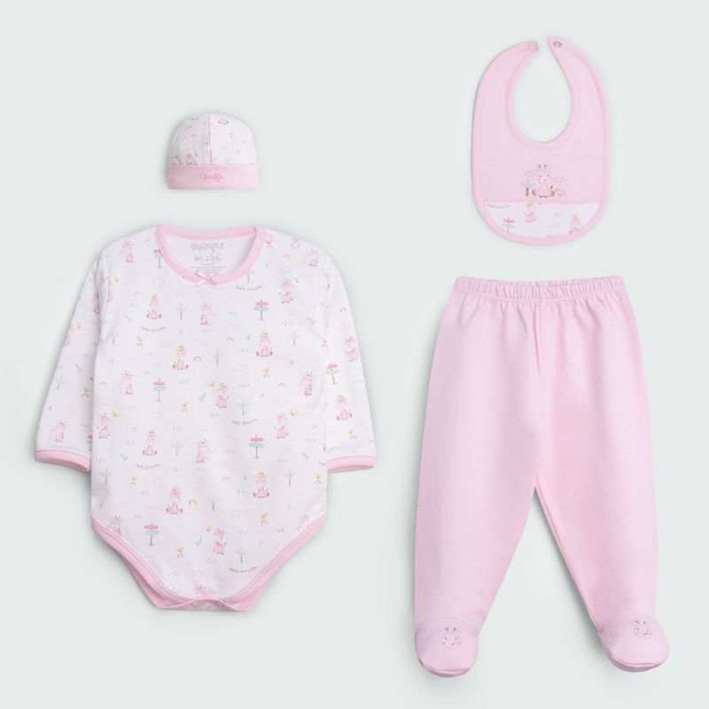 Ajuar africa bebita confeccionado en material algodon pima. Disponible en colores vibrantes como rosado, rosa, chicle, celeste, verde, beige. Tallas disponibles: 0BB, 1BB, 2BB, 3BB.