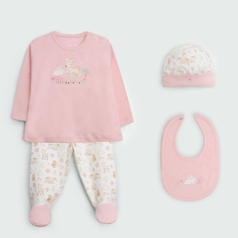 Ajuar aurora bebita confeccionado en material algodon pima. Disponible en colores vibrantes como rosado, rosa, verde. Tallas disponibles: 0BB, 1BB, 2BB, 3BB.