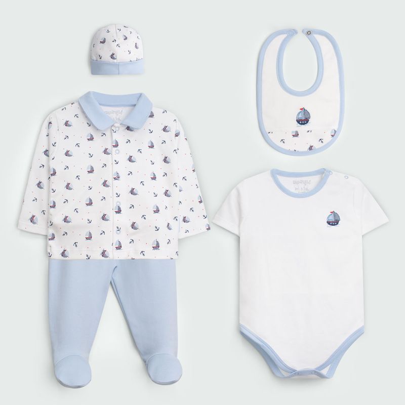 Ajuar Barquitos Bebito Blanco Celeste Fantasia 0Bb