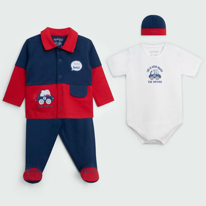 Ajuar beep beep bebito confeccionado en material algodon pima. Disponible en colores vibrantes como melange, verde, rojo. Tallas disponibles: 0BB, 1BB, 2BB, 3BB. Compra online AJUAR BEEP BEEP BEBITO M1494 y mas AJUAR en nuestra tienda