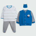 El Ajuar Dinbaby M/L para bebito está elaborado en franela de alta calidad, ofreciendo suavidad, abrigo y comodidad en cada uso. Este encantador set de 4 piezas está disponible en colores vibrantes como azul oscuro, rojo y azul claro. Incluye una chompa con un adorable bordado de dinosaurio, acompañada de una gorra con orejitas que añade un toque tierno al conjunto. El polo presenta un diseño a rayas que combina perfectamente con el pantalón, el cual cuenta con un creativo bordado de huellas de dinosaurio en la zona de los pies. Un ajuar ideal para mantener a tu bebé abrigado, cómodo. Con las tallas: 1BB, 2BB y 3BB.