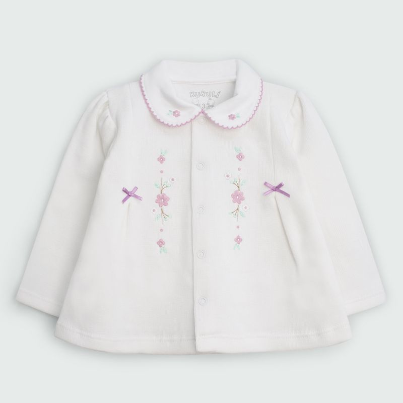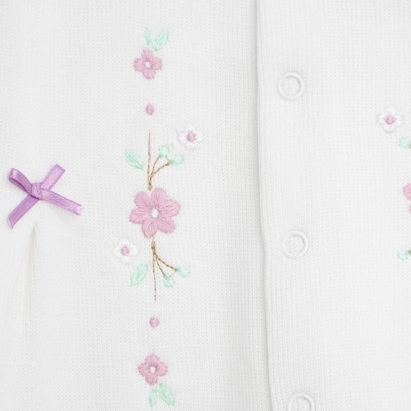máximo confort y libertad de movimiento para la recién nacida. Este material, ideal para la piel sensible del bebé, proporciona abrigo ligero y transpirabilidad, acompañándola con ternura desde sus primeros días de vida.