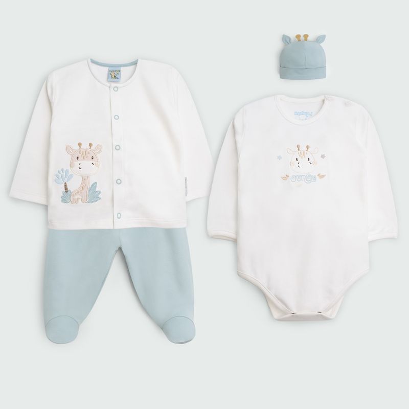 El ajuar incluye prendas esenciales para los primeros días del recién nacido, siendo ideal tanto para el uso diario como para ocasiones especiales. Gracias a su composición fresca y transpirable, es perfecto para mantener al bebé cómodo en cualquier estación del año, brindándole libertad de movimiento y bienestar en todo momento.