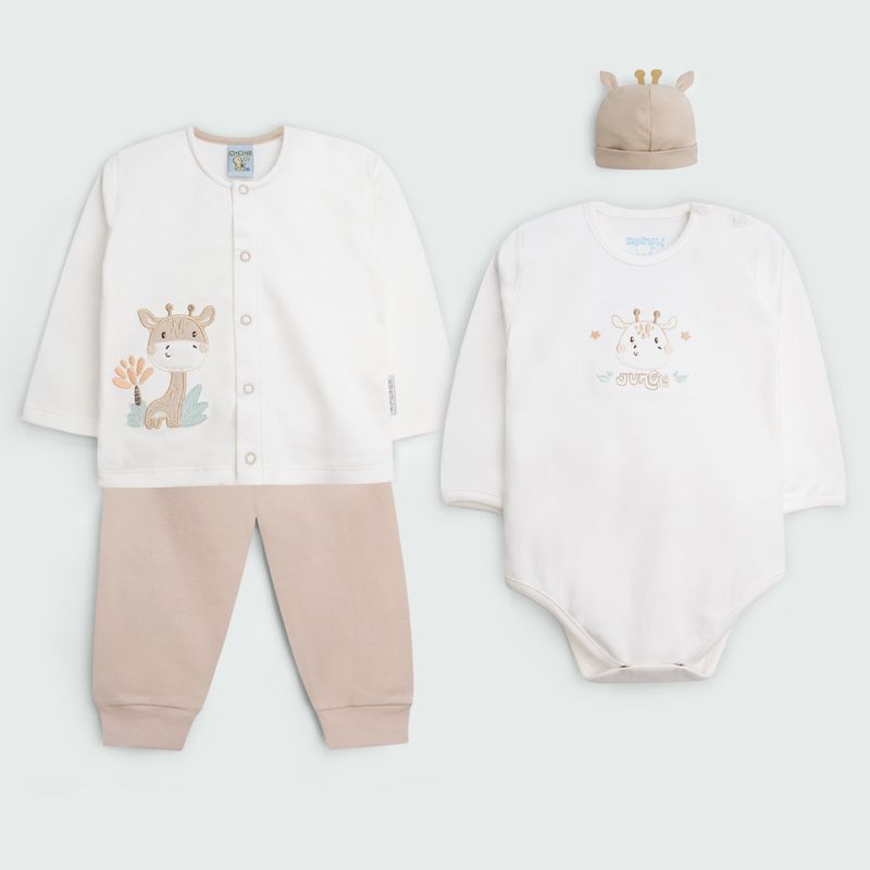 Este encantador ajuar "Jirafita" de la línea Bebitos ha sido cuidadosamente confeccionado en tela