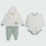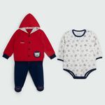 El Ajuar Leoncito M/L para bebé ha sido confeccionado en algodón pima de primera calidad, brindando una sensación de frescura, suavidad y confort ideales para el uso diario. Este dulce set de tres piezas se presenta en tonos vivos como crema, melange y rojo, para realzar la personalidad y alegría del pequeñito. El conjunto incluye un body con un encantador diseño de pequeños leones, una chaqueta con botones al frente que presenta un tierno bordado de la cabeza de un león en la parte inferior izquierda y delicadas letras bordadas en el lado superior derecho. El pantalón, que completa el ajuar, destaca por los divertidos rostros de león bordados en los pies, añadiendo un toque lúdico y encantador. Una opción ideal para mantener a tu bebé cómodo, fresco y lleno de ternura. Con las tallas: 0BB, 1BB, 2BB y 3BB.
