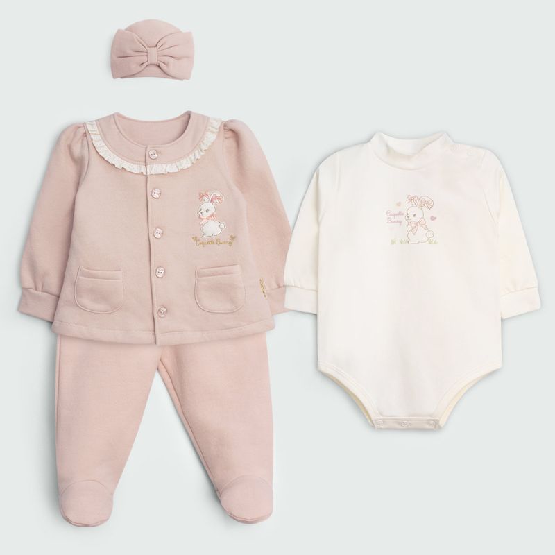 ✔ Piezas: 4 (chaqueta, pantalón, body y gorro)