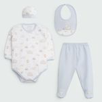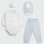 Este ajuar incluye prendas esenciales para mantener abrigado y cómodo al bebé desde el primer día. Su diseño está inspirado en adorables