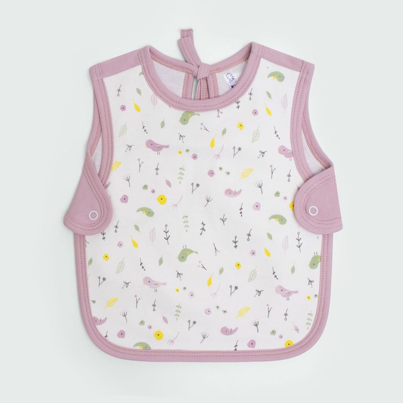 Babero estampado c plastico amiguitos confeccionado en material algodon pima. Disponible en colores vibrantes como rosado, rosa, morado, celeste, verde, beige. Talla: STD.