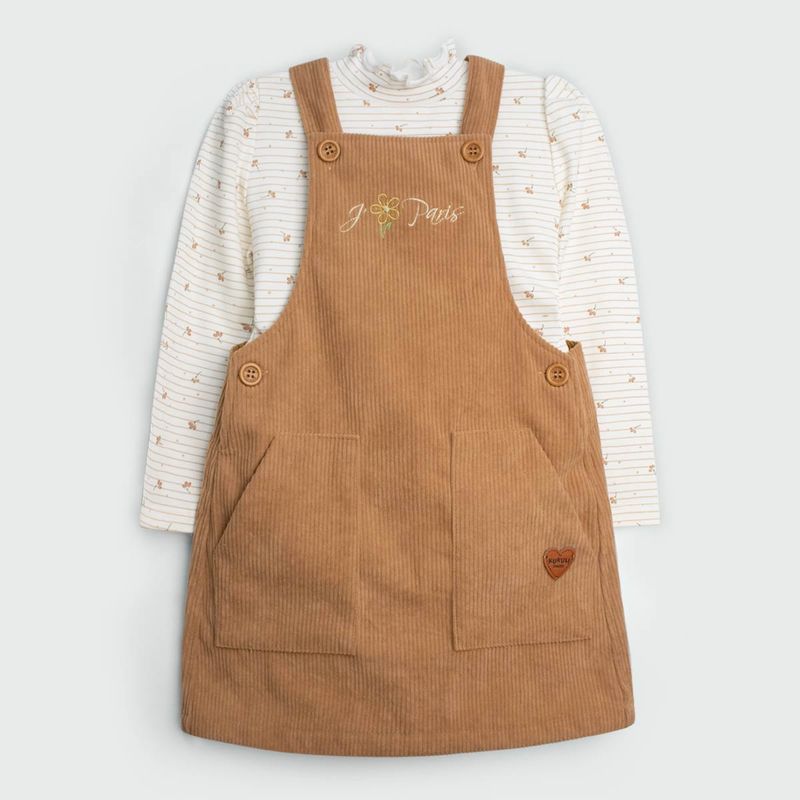 Conj milagros nina confeccionado en material corduroy. Disponible en colores vibrantes como crema/camell, crema/palo rosa, crema/vino. Tallas disponibles: 10T, 12T, 14T, 4T, 6T, 8T.