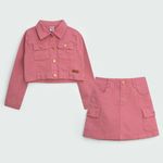 blusa de corte moderno, con detalles que pueden variar según la colección (botones decorativos, bolsillos o volantes), y una parte inferior (short o pantalón, según modelo) con