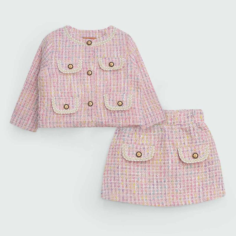 Conjunto daniela nina confeccionado en material poliester, Disponible en color rosado. Tallas disponibles: 10T, 12T, 14T, 16T, 4T, 6T, 8T.