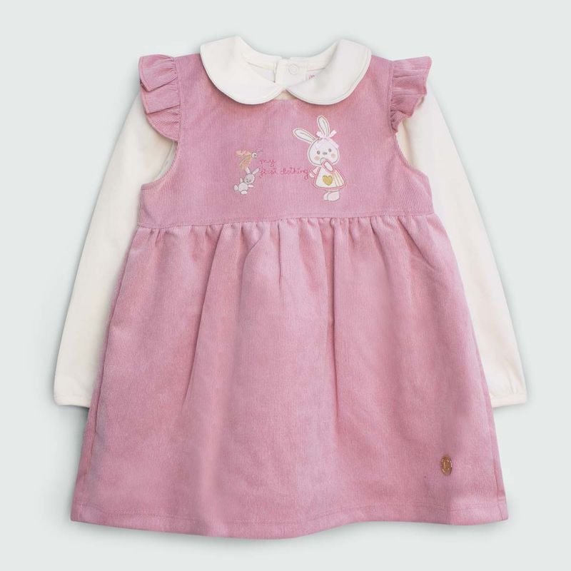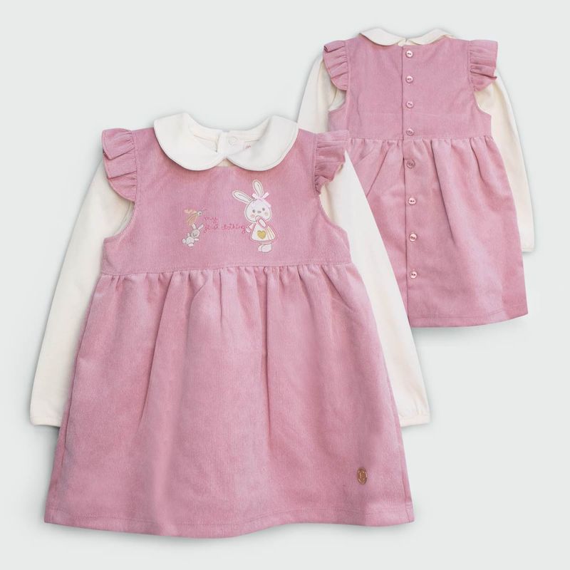 Conjunto Orejitas manga larga para niña, confeccionado en algodón pima de alta calidad, suave, abrigador y delicado con la piel, ideal para climas frescos. Incluye un vestido tipo jumper con diseño de orejitas y una prenda interior de manga larga, creando un look tierno y completo.