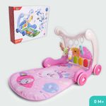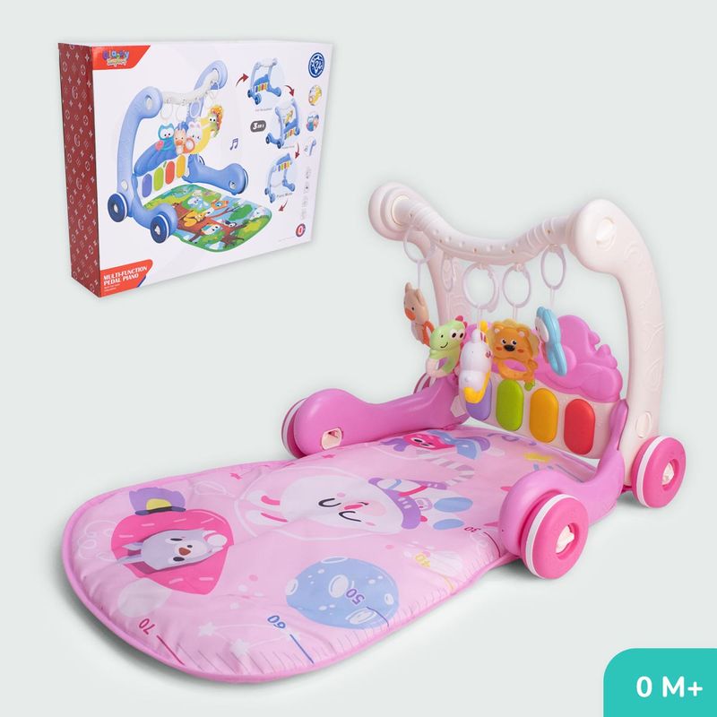 Gimnasio multifuncional pedal piano 3 en 1 para bebé unisex, confeccionado en material plástico resistente y seguro, ideal para estimular el desarrollo desde los primeros meses. Su diseño incluye ruedas tipo caminador, piano interactivo y tapete acolchado, brindando una experiencia completa de juego.