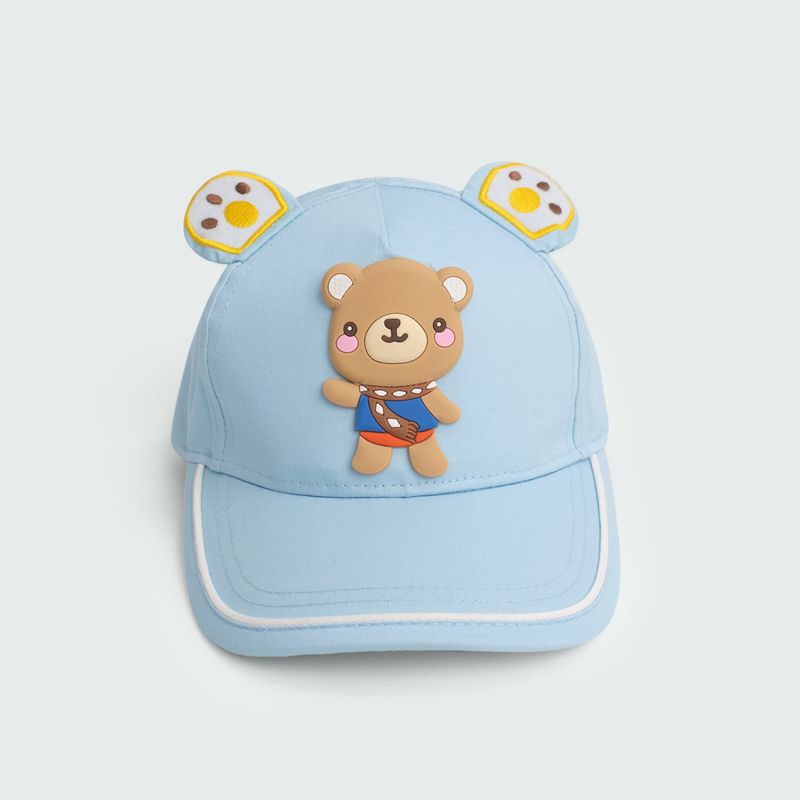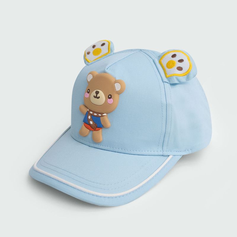 Gorro osito confeccionado en material cotton twill, Disponible en color celeste. Tallas disponibles: 12-24 MESES, 6-12 MESES.
