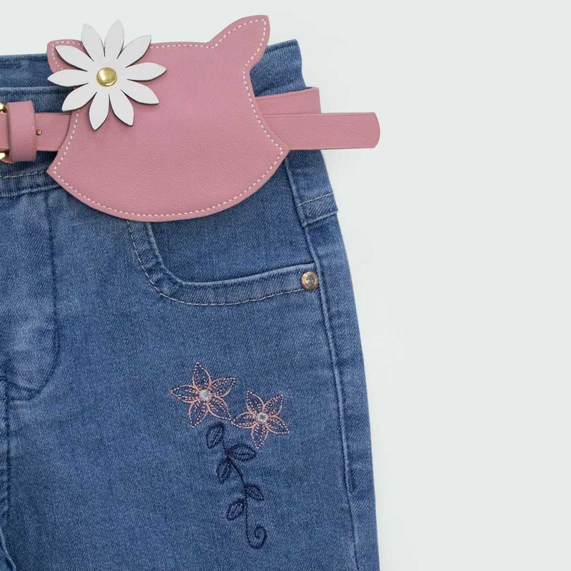 Pantalon floricienta nina confeccionado en material denim de alta calidad, 2 piezas. Disponible en colores vibrantes como azul, celeste. Tallas disponibles: 4T, 6T, 8T, 10T, 12T, 14T, 16T, 18T.