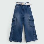 Pantalon palazo cargo nina confeccionado en material jean rigido. Disponible en colores vibrantes como azul, celeste. Tallas disponibles: 10T, 12T, 14T, 16T, 18T, 8T.
