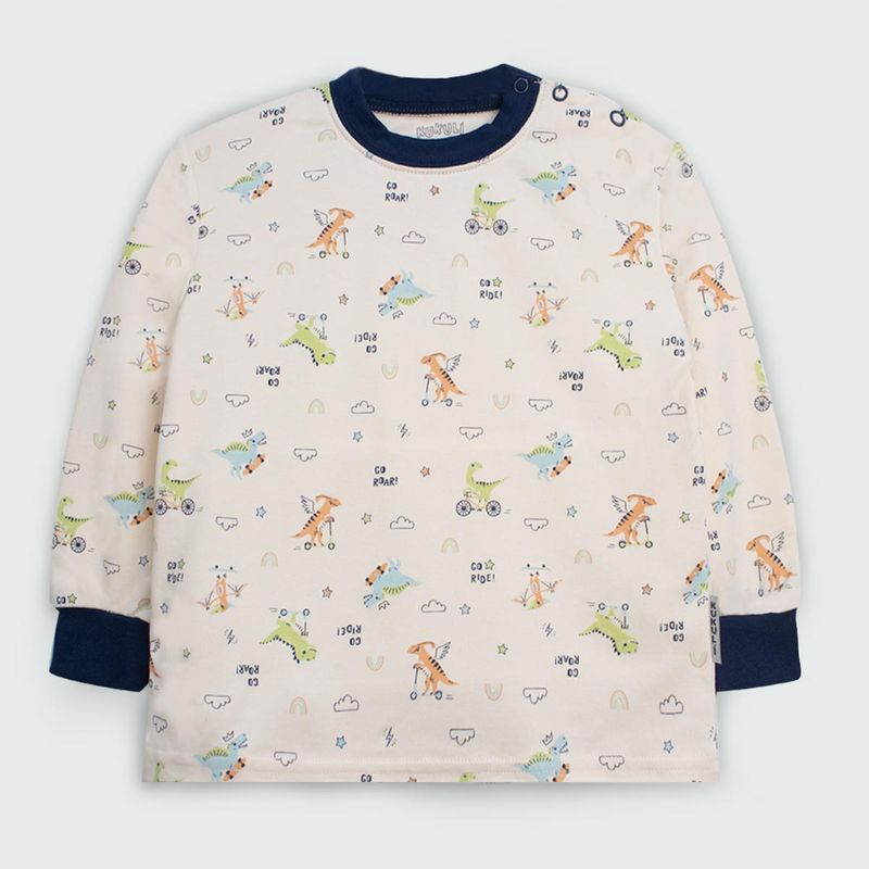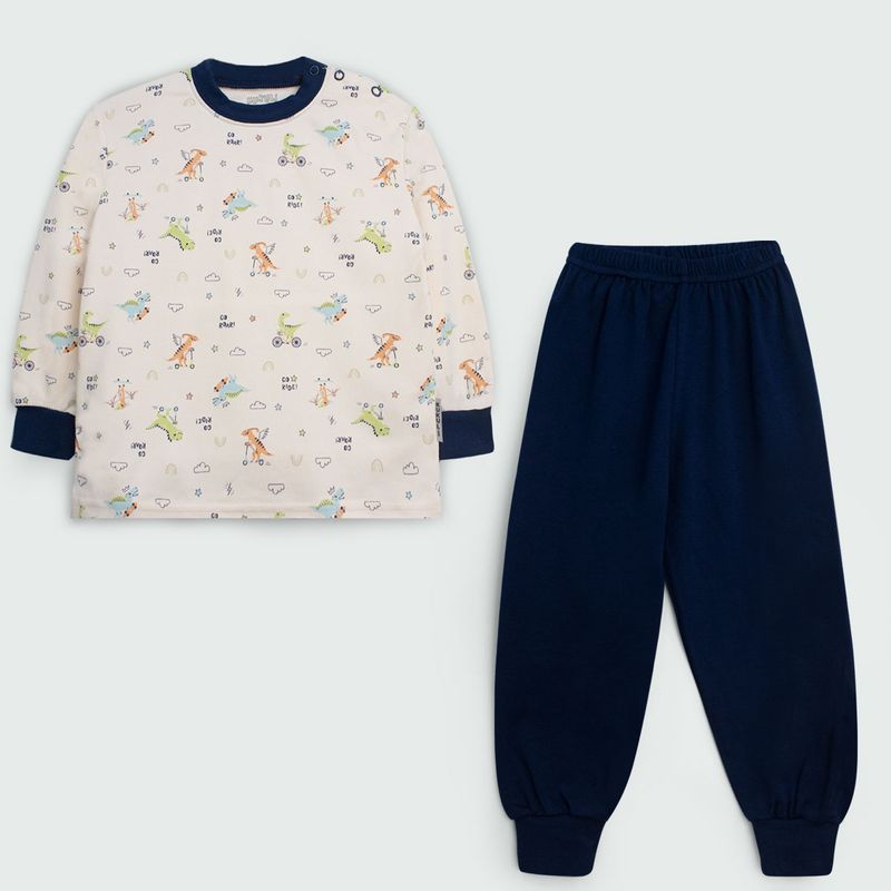 El Pijama Saurio M-L para niño, confeccionado en algodón pima suave y transpirable, ofrece comodidad y frescura para un descanso ideal en climas templados o cálidos. Incluye camiseta de manga larga y pantalón, diseñados para libertad de movimiento. Disponible en colores vibrantes como perla, celeste fantasía y verde caribe, combina estilo y funcionalidad para los pequeños aventureros.