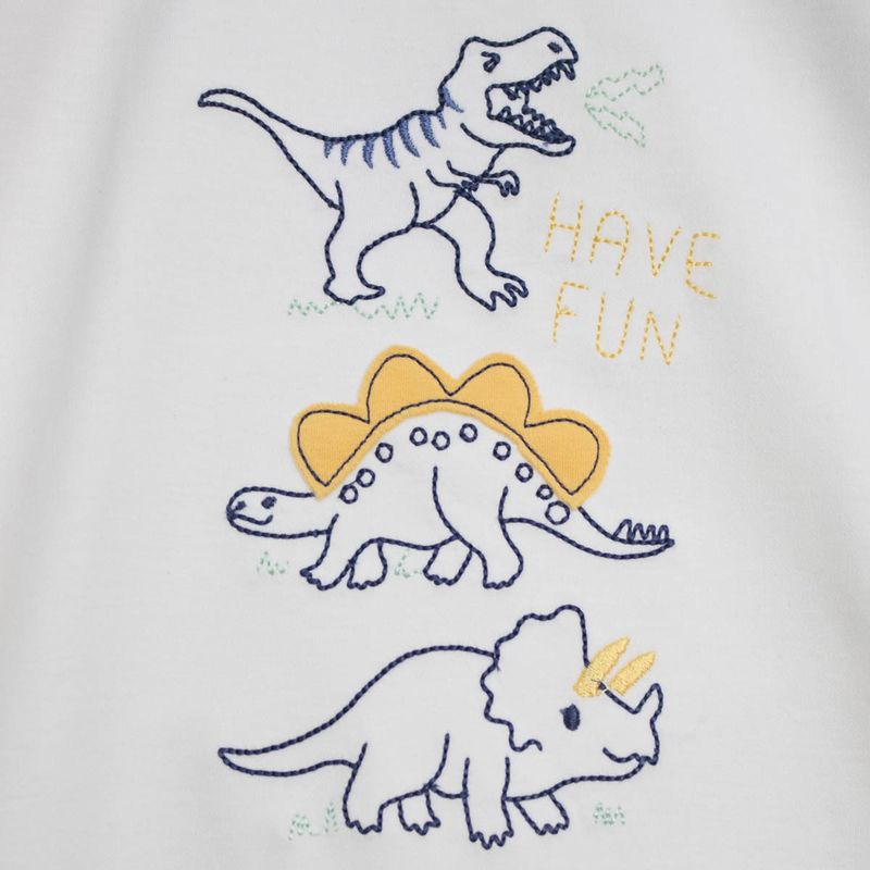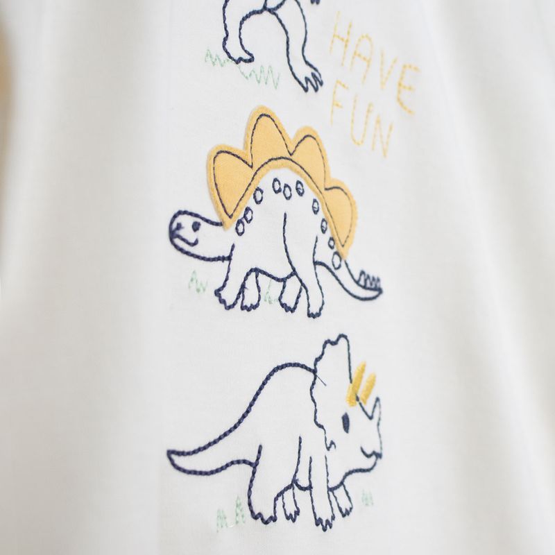El Polo David de manga larga está confeccionado en algodón pima, un material de primera calidad reconocido por su extraordinaria suavidad, frescura y resistencia, ideal para cuidar la delicada piel del bebé y brindar comodidad durante todo el día. Con los colores como blanco y crema, este polo es para el uso diario, combinando estilo y confort en una sola prenda. Su diseño destaca por un divertido estampado de dinosaurios, que aporta un toque tierno y lleno de energía para su pequeño, despertando su curiosidad y haciendo cada puesta más divertida. Con las tallas: 5BB, 2T y 4T.