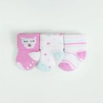 tres pares de medias en colores y diseños surtidos, ideales para combinar con diferentes outfits, ya sea para uso diario en casa, salidas o actividades en la guardería. Su practicidad, estilo y confort las convierten en un básico infaltable en el guardarropa infantil.
