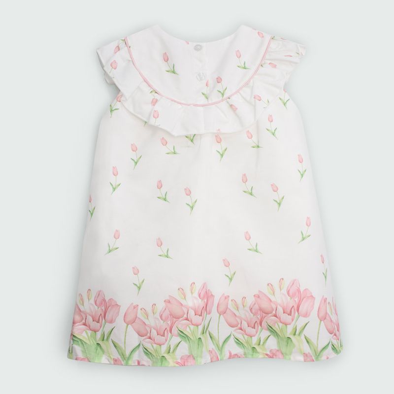 Este vestido no solo ofrece estética, sino también calidad y confort, gracias a sus acabados prolijos y materiales cuidadosamente seleccionados para cuidar la piel sensible infantil.