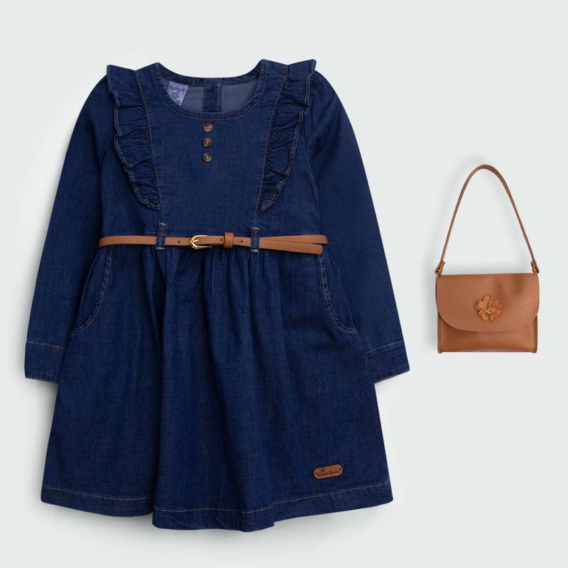 Vestido antonia m l c cartera correa confeccionado en material denim. Disponible en colores vibrantes como azul, palo rosa. Tallas disponibles: 10T, 12T, 14T, 4T, 6T, 8T.