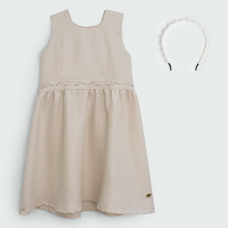 Vestido Celeste M/C Niña Beige 6T