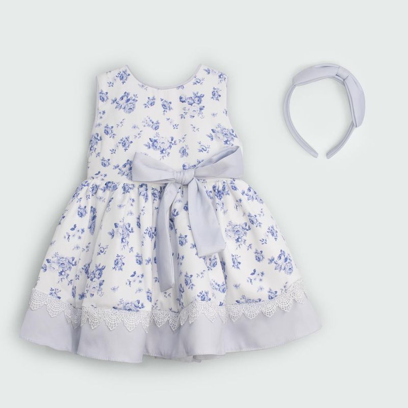 Vestido Mariana C/Vincha Niña Celeste Bebe 2T
